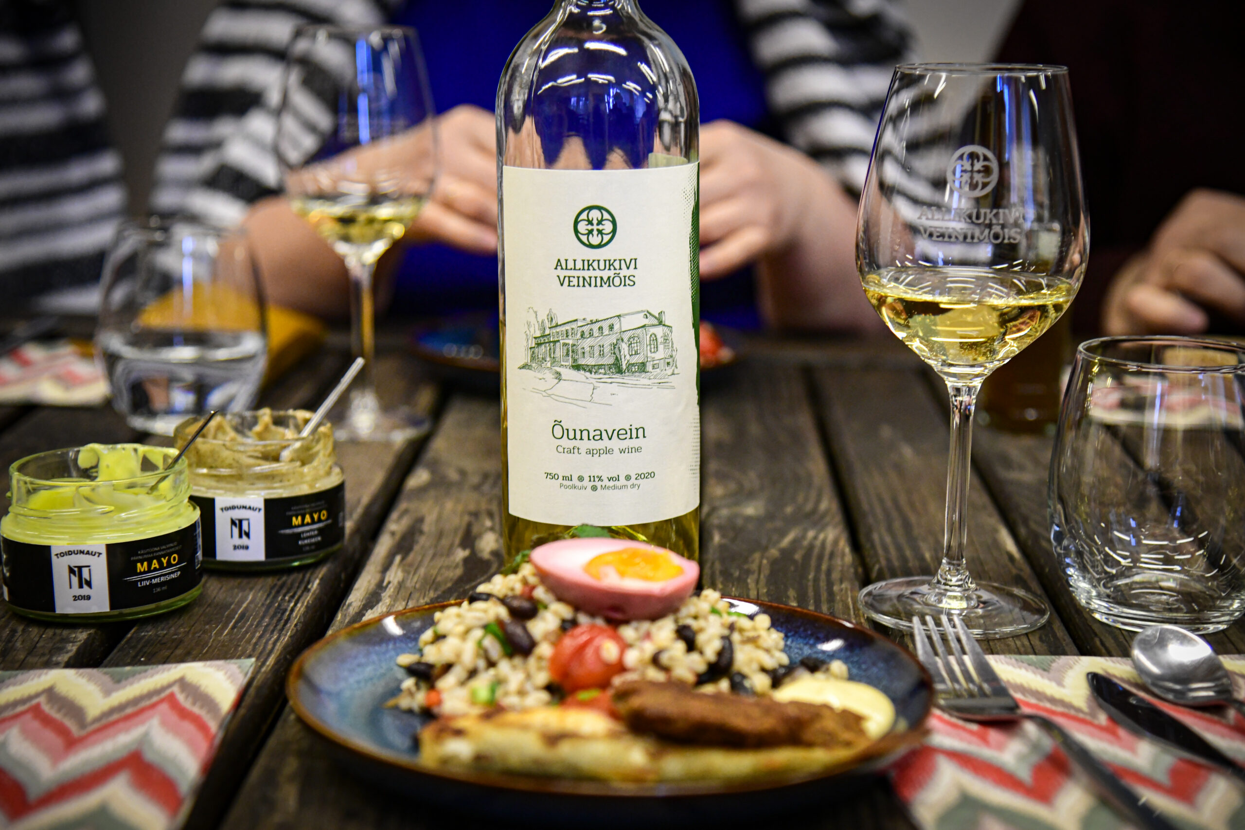 Päeva kroon oli Allikukivi veinimõis, kus meid ootas Toidunaudi koostatud õhtusöök ning Allikukivi veinide degustatsioon. Veinimõisa lugu on ettevõtluse ja piirkonna potentsiaali kasutamise lugu — keegi nägi võimalust seal, kus teised ei näinud midagi. Ja nende lugu on tõesti kuulamist väärt. Toidunaut üllatas põnevate majoneeside ja maitsva menüüga meie jaoks püsti pandud pop-up restoranis.